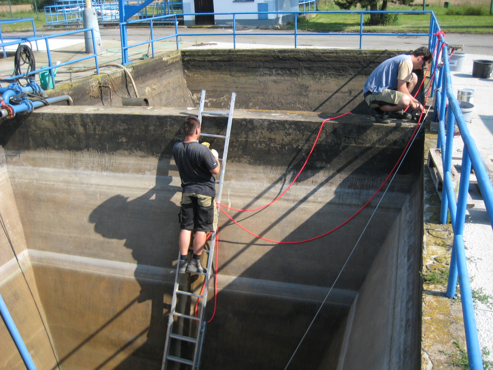 12. 10. 2009Naše divize, která se zabývá opravami a revizemi šachtových poklopů a uličních vpustí, nedávno prováděla zatěsnění betonových nádrží ve Vodňanech. Při této práci byly použity naše speciální sanační a těsnící směsi IPA a HEVOLIT REPAS.